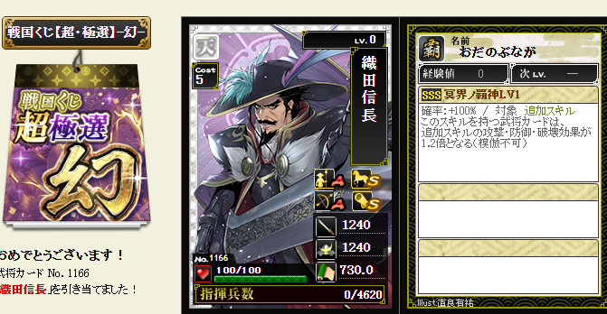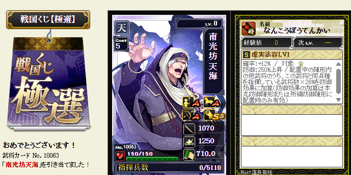 この方入れてたっけ・・・という方降臨・・・まあ、天傑様以外はハズレなので・・・